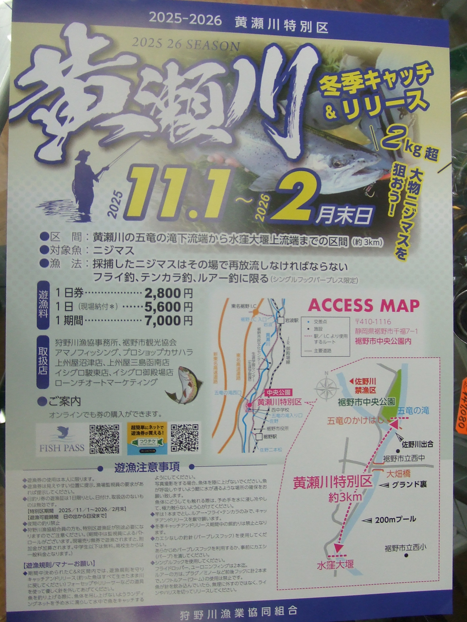 2025 黄瀬川特別区 遊漁証、遊漁券 販売開始
